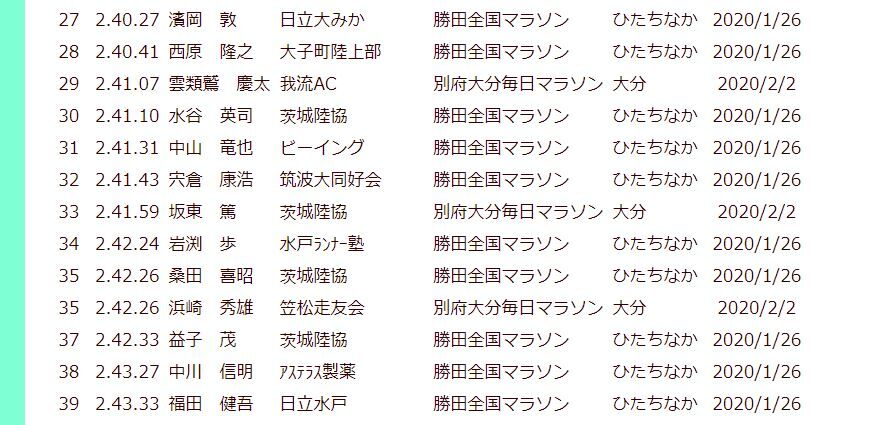 茨城県陸上競技協会の公式サイトで2020年ランキングの男子マラソンもようやく掲載されました。